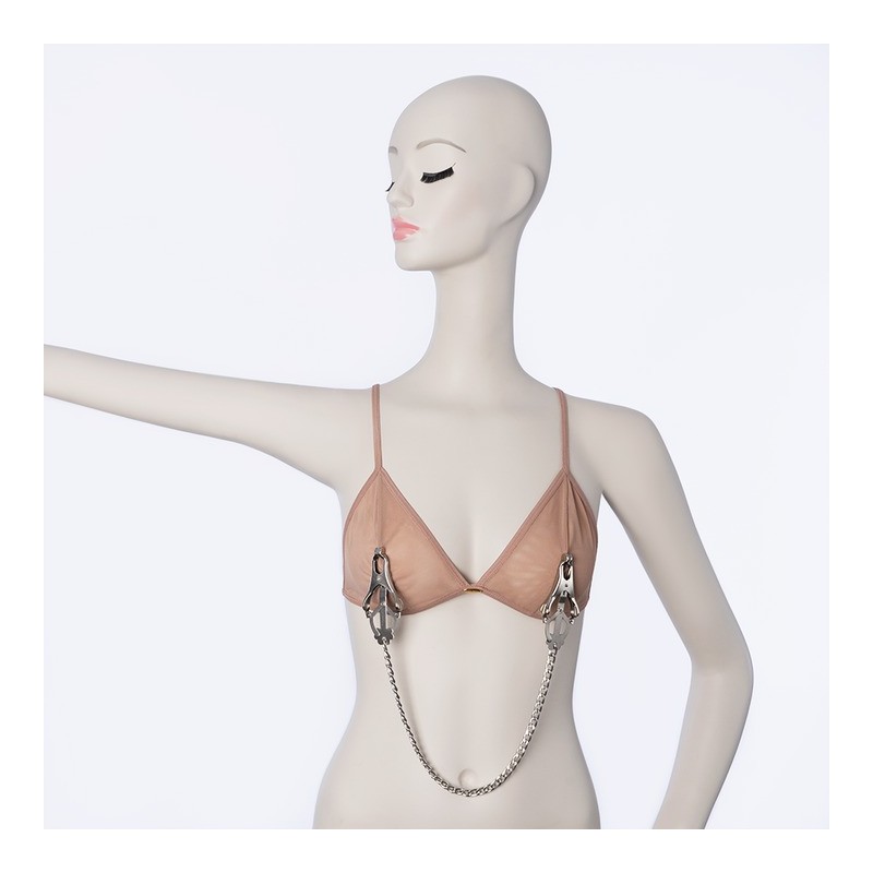 Pinza para pezones con tornillo ajustable para mayor presión sobre la zona, viene con cadena decorativa