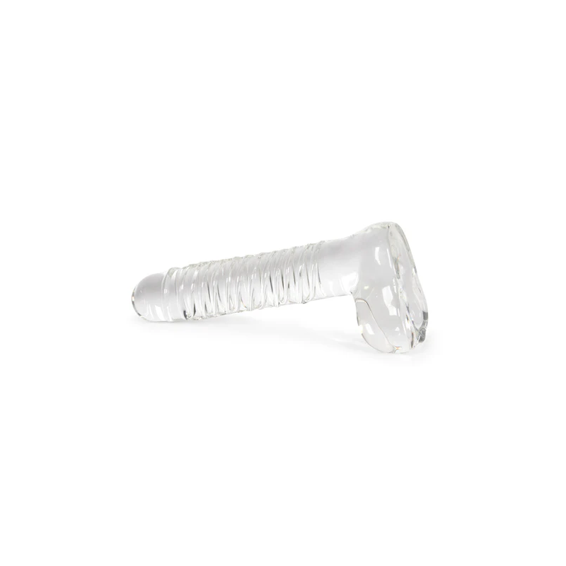 Pene de vidrio con diseño realista y testículos.